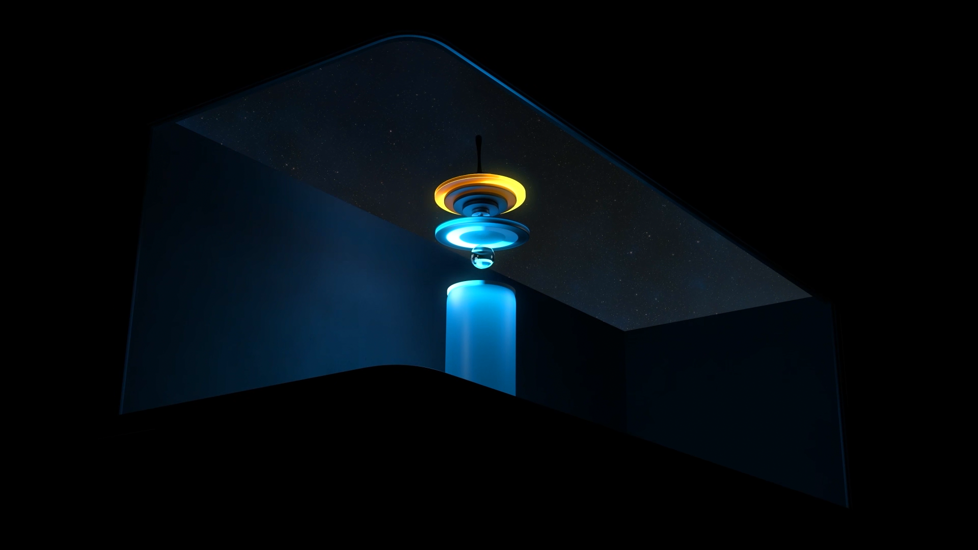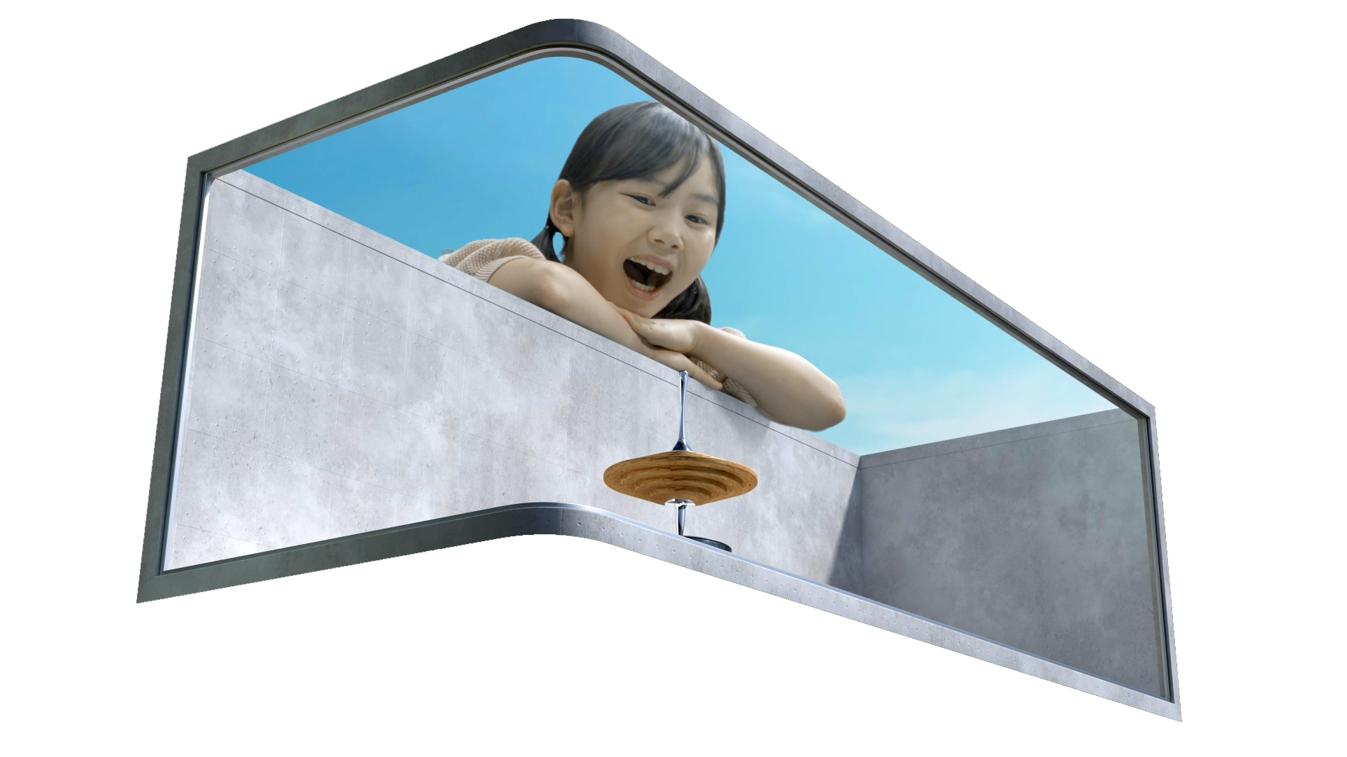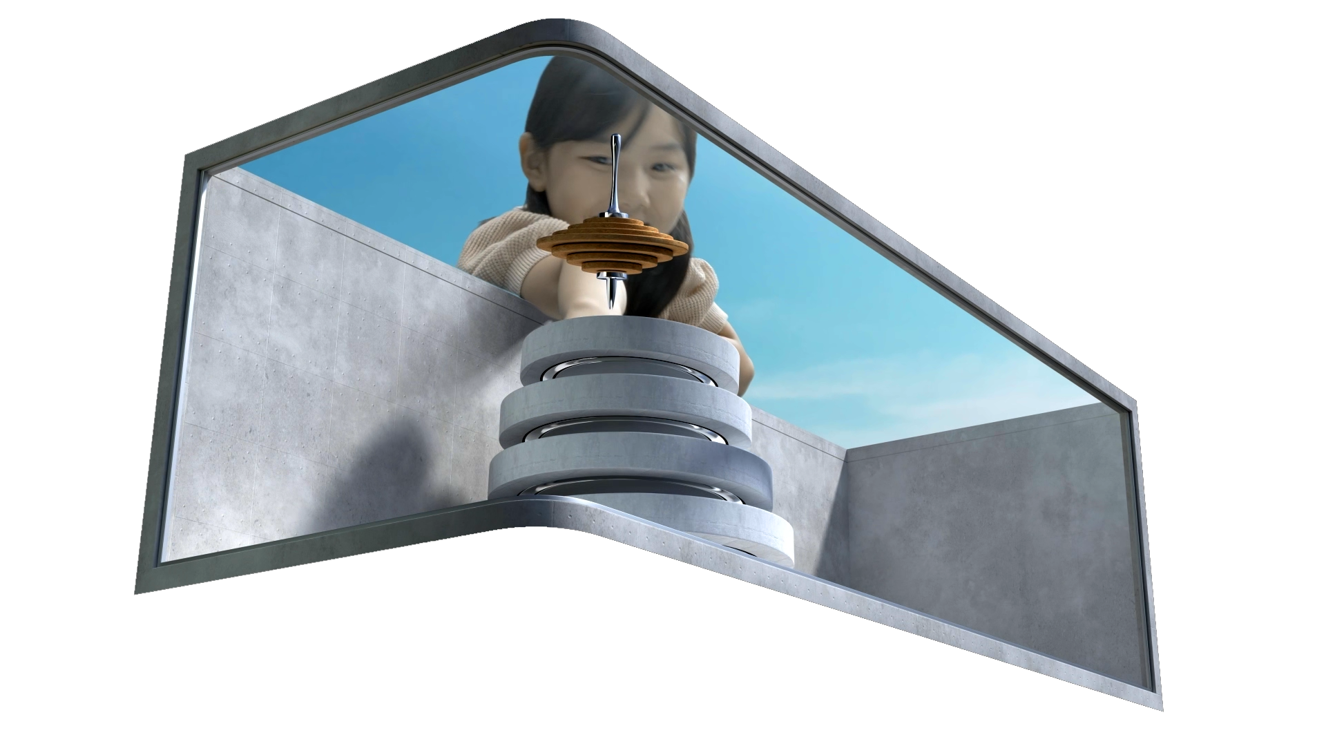 팽이가 조형물을 타고 회전하며 움직이는 흐름을 강조하며 낮과 밤의 시간의 흐름을 표현하였습니다.