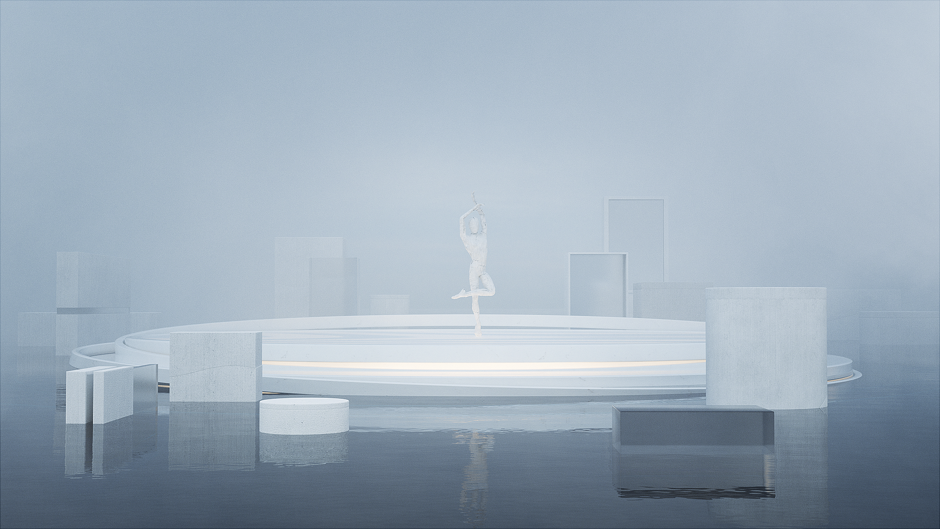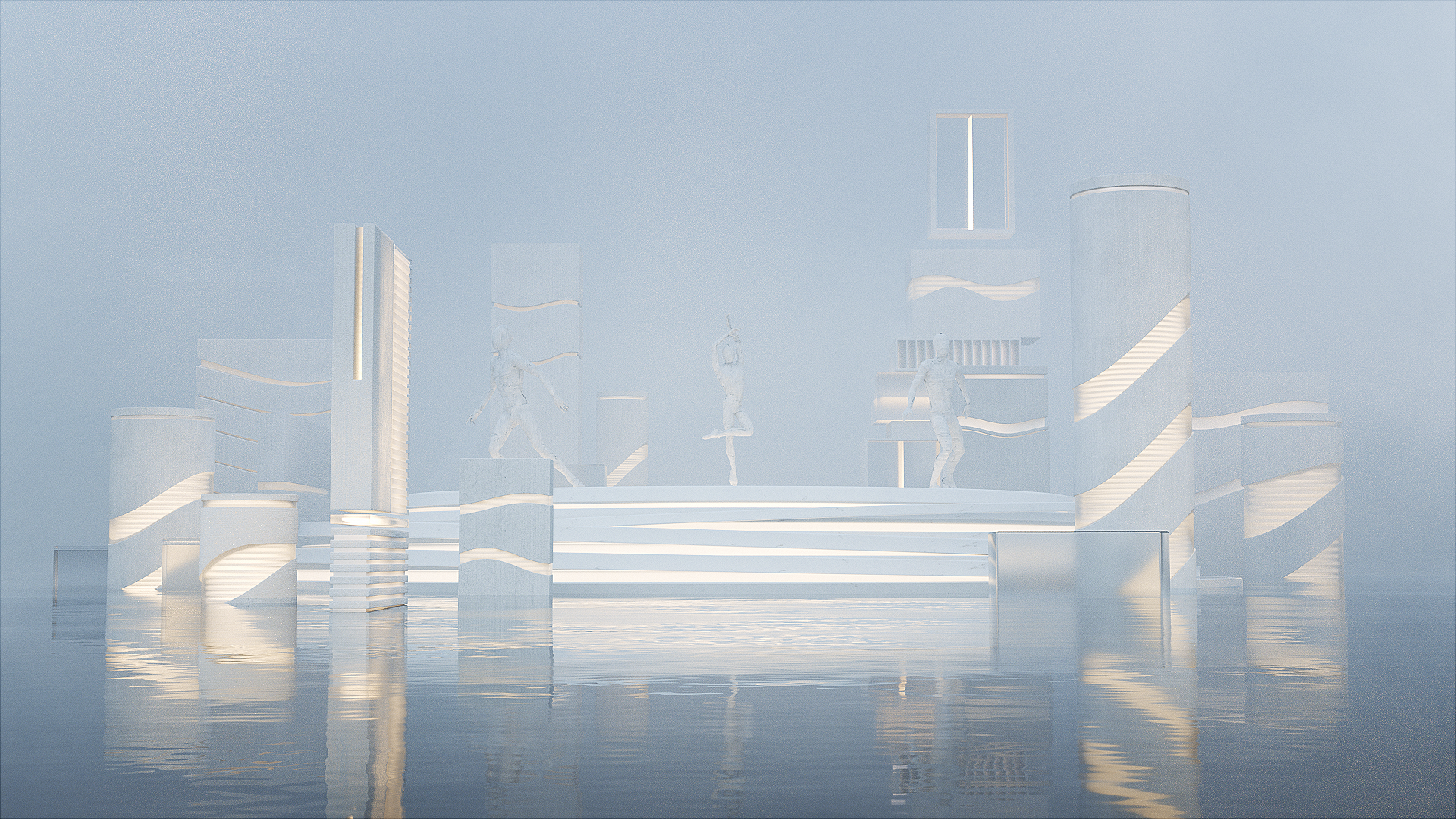 현대무용의 ‘흐름’이라는 주제와 서울 한강의 유동적인 이미지를 결합하여, 공간 전체가 움직임과 리듬을 시각적으로 느낄 수 있도록 디자인했습니다.